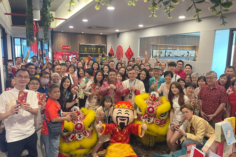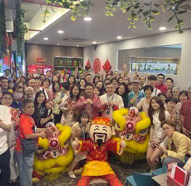 活动正式开始后,首席执行官 Anthony Chin 发表讲话,感谢大家过去一年的努力,并分享了对新一年的期待。接着,精彩的舞狮表演将现场气氛推向高潮,寓意新的一年好运连连、生意兴隆。大家还踊跃参与了幸运抽奖环节,幸运儿们带走了精美奖品,增添了不少惊喜与欢乐。最后,大家一起合影留念,为这场温馨又充满喜悦的聚会画下完美句点。
